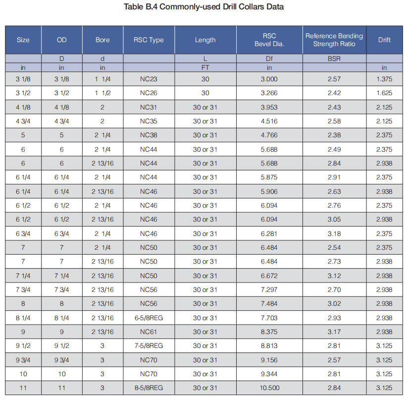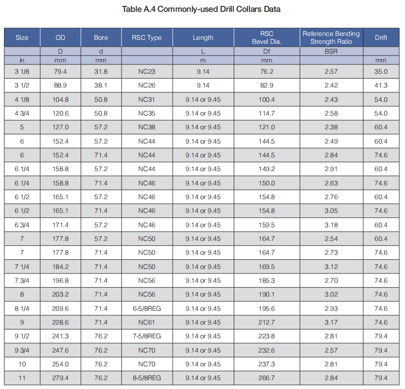 (e)Please refer to Table A.4 or Table B.4 for the specifications of commonly used API drill collars.
